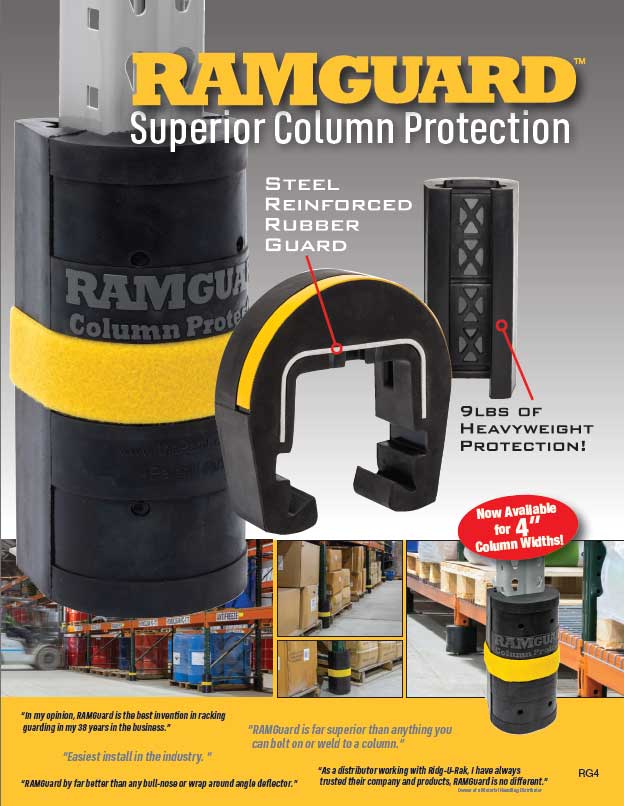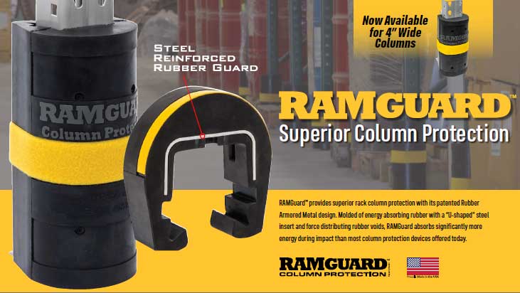 RAMGuard™ provides superior rack column protection with its patented Rubber Armored Metal design. Molded of energy absorbing rubber with a "U-shaped" steel insert and force distributing rubber voids, RAMGuard absorbs significantly more energy during impact than most column protection devices offered today.